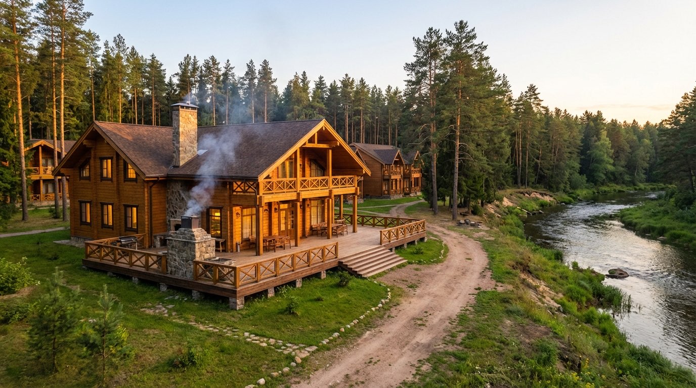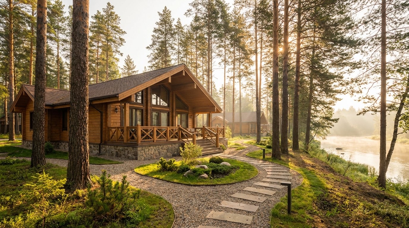 Уютные деревянные дома для семейного уикенда или отдыха с друзьями — в шаговой доступности от реки